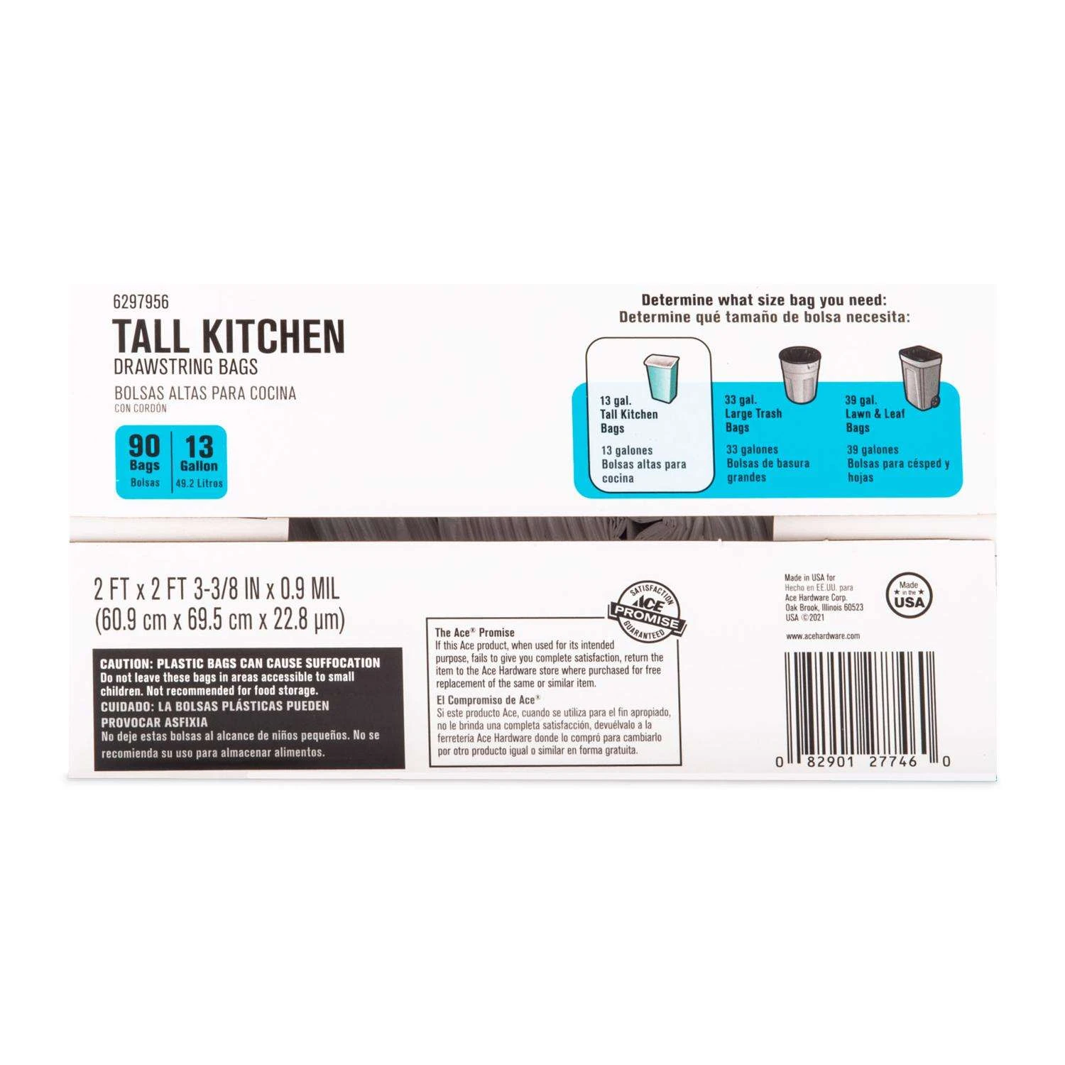 Ace 13 Gal Tall Kitchen Bags Drawstring 90 Pk 0.9 Mil