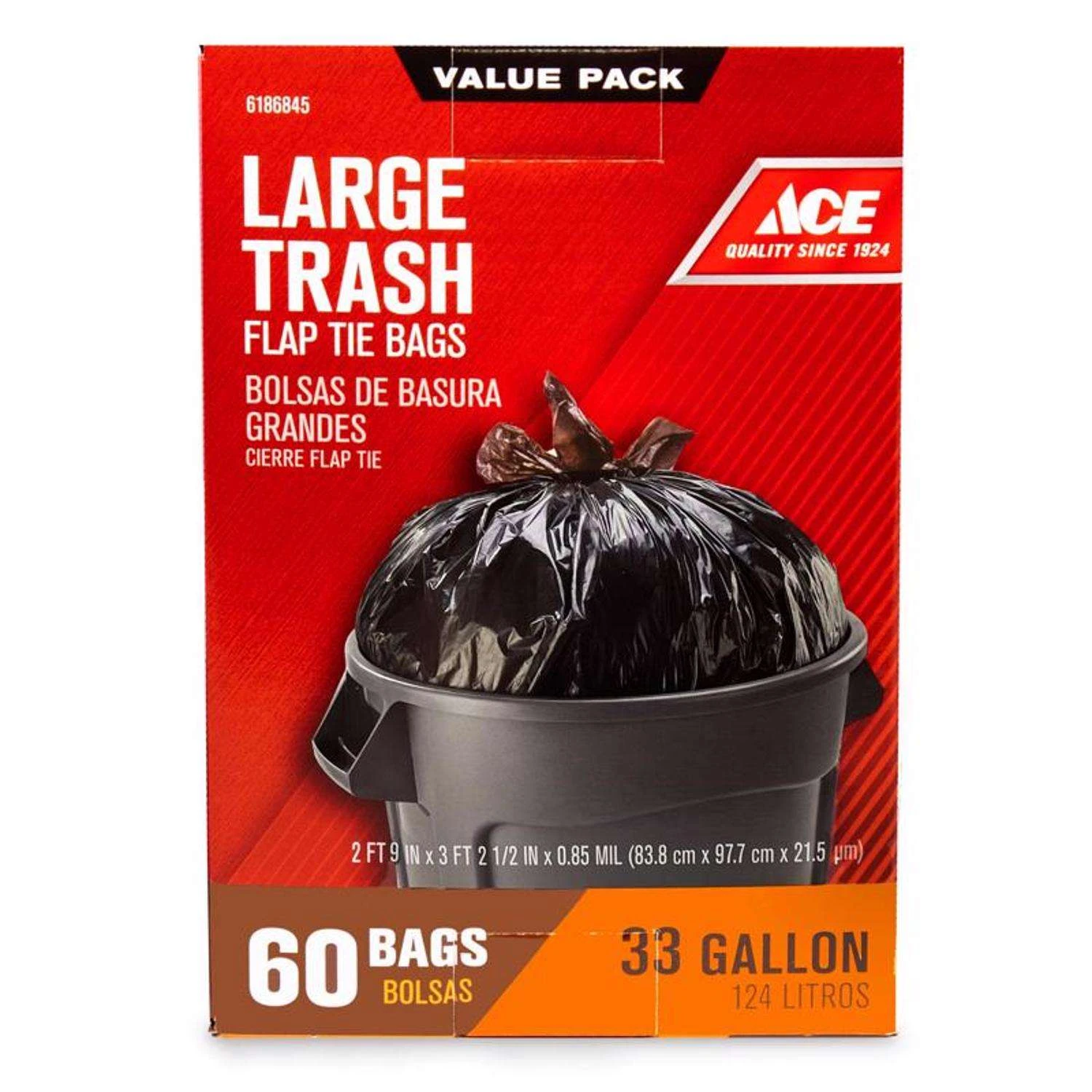 Ace 33 Gal Trash Bags Flap Tie 60 Pk 0.85 Mil