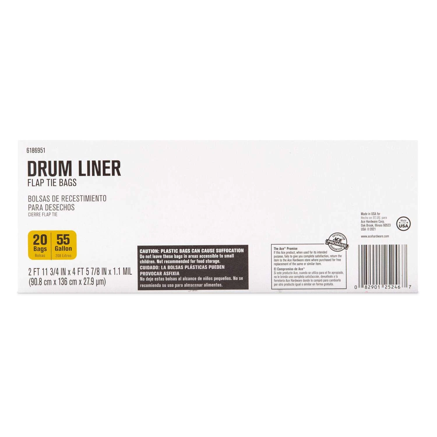 Ace 55 Gal Drum Liners Flap Tie 20 Pk 1.1 Mil