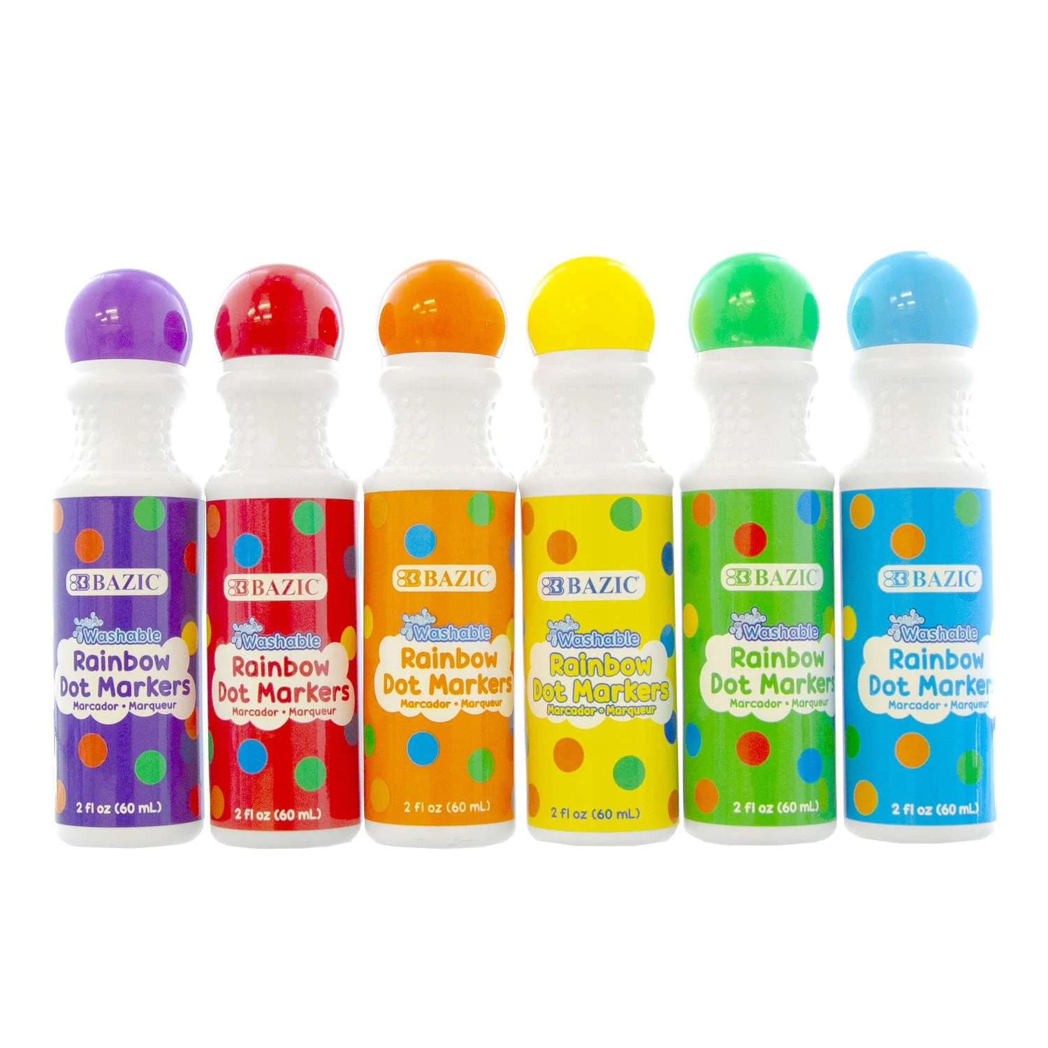 Washable Dot Marker promotes childhood development by introducing colors, improving hand-eye coordination. Bazic offers a quality line of school and office products. We thrive on imagination, passion and mingle creative ideas with innovative solutions that result in delivering stationary products with the utmost quality. We focus on strong product design at low cost. Non-toxic colorful washable dot marker is a fun art tool for children of all ages loved by toddler, preschool and kindergarten classroom teachers Easy to set up and clean up, no cups, no brush, no mess! alternative for finger paints, play bingo at home as an effective number learning exercise for younger boys and girls Color coded caps indicate ink colors, bottle comes with ergonomic textured grip to make it easy for kids to hold it Enjoy stamping, coloring, decorating your scrapbooks