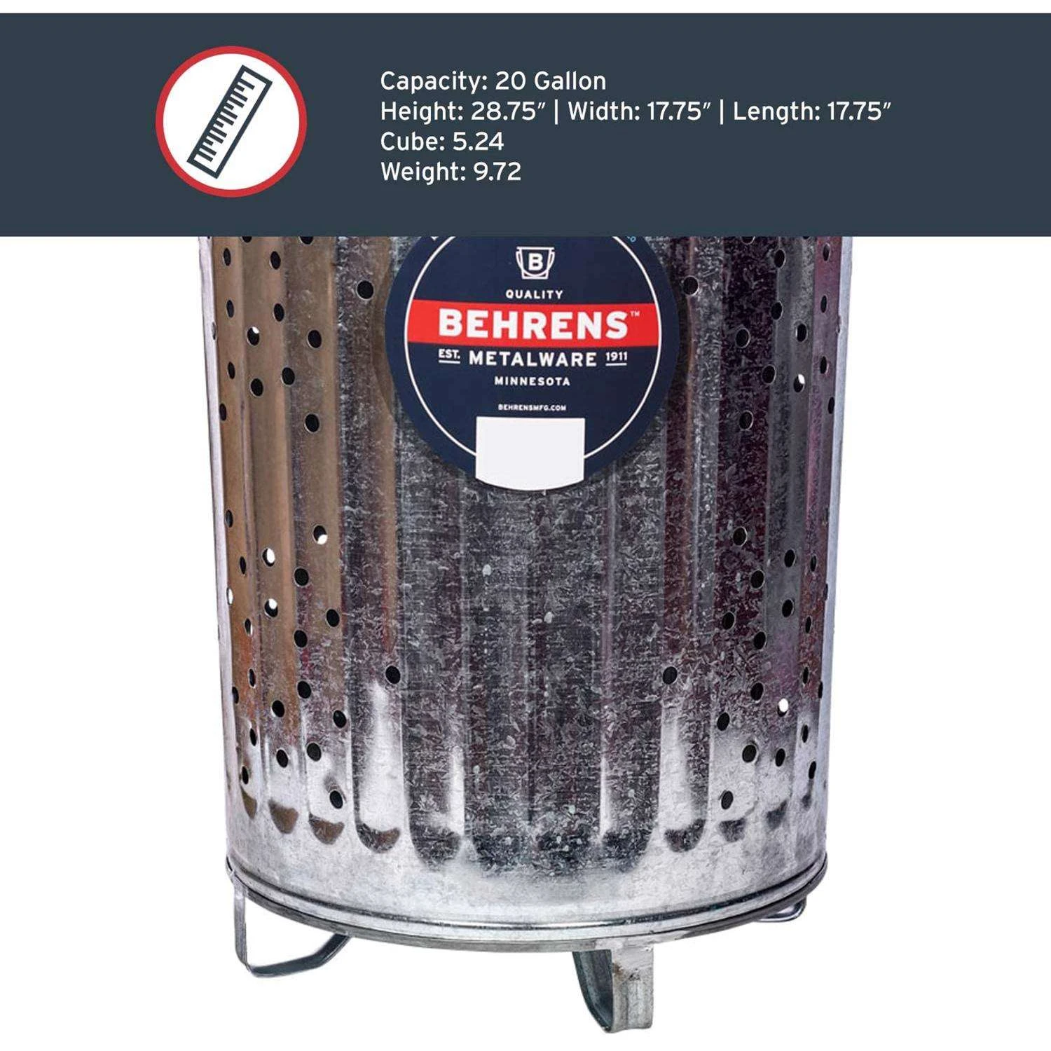 | Search Field | Behrens 20 gal Silver Galvanized Steel Trash Burner Can Lid Included Animal Proof/Animal Resistant Trash and Recycling Outdoor Trash Cans and Recycling Bins GALVANIZED WARE METAL RUBBISH BURNERS BEHRENS MANUFACTURING LLC Behrens 20__rexuom__gal 20__rexuom__gallon 20__rexuom__gallons |