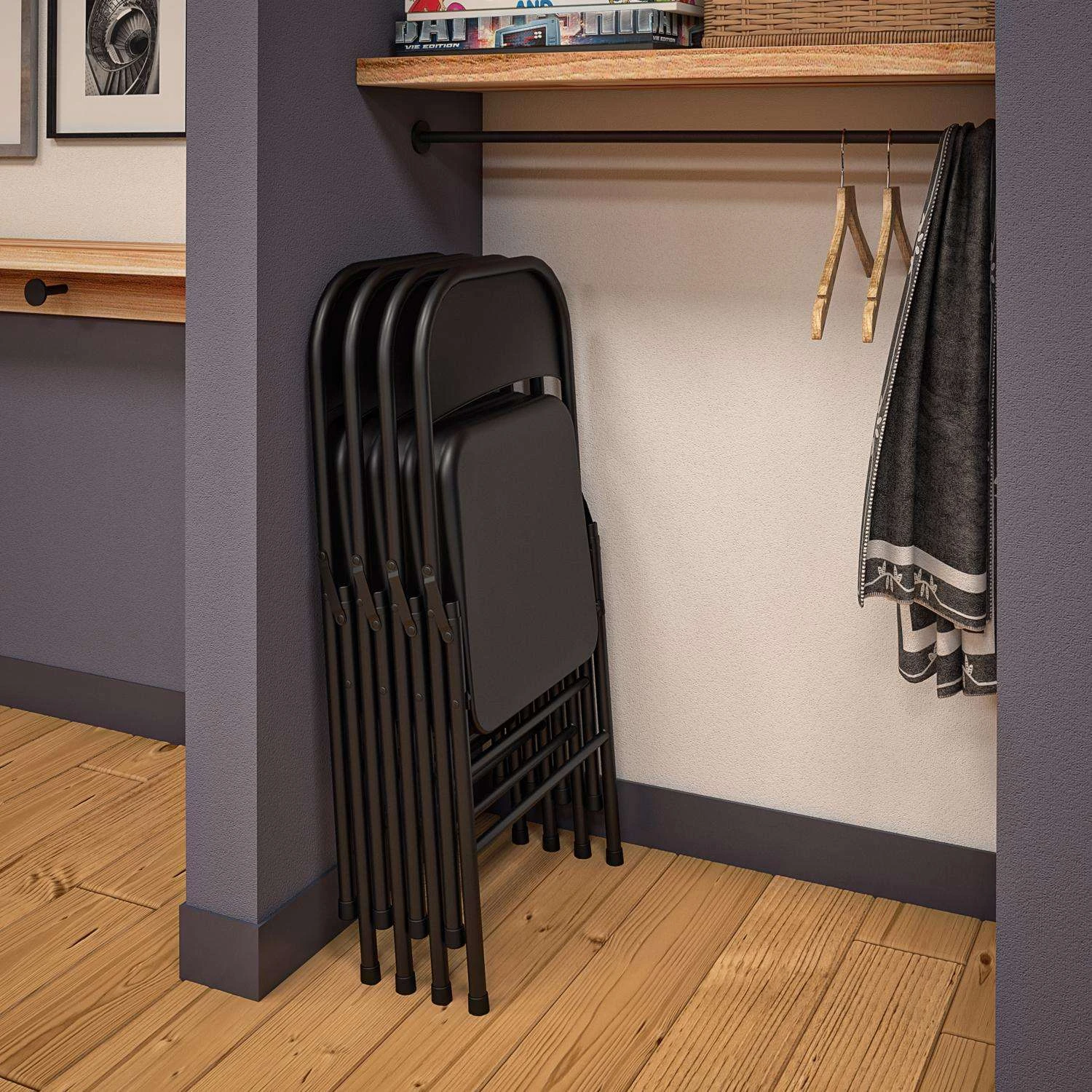 Make the Cosco all-steel folding chair an essential piece of folding furniture in your home, office, apartment or college-living environment! Use these chairs when extra company is joining you to celebrate the holidays or on a daily basis for extra seating. Built to ensure maximum comfort, these chairs have a contoured seat back to make your experience comfortable and full of relaxation as you socialize, eat dinner or do work. Featuring a sturdy steel construction with cross braces and a tube-in-tube design, these chairs have a 250 pound weight capacity and promise to never fold under the pressure! Finished with a long lasting powder coat, these products are low maintenance and easy to clean no matter the mess. Non-marring rubber leg tips complete this quality product to prevent slipping and protect all floor surfaces. When folded, the chair is small and compact for easy storage and transport, no matter the number you may need! Available in a variety of colors to match any existing home décor, always be ready for the arrival of your guests in affordable style! Contoured seat back offers comfort while seated Prevent slipping and protects floor surfaces Folds flat for easy storage and transport