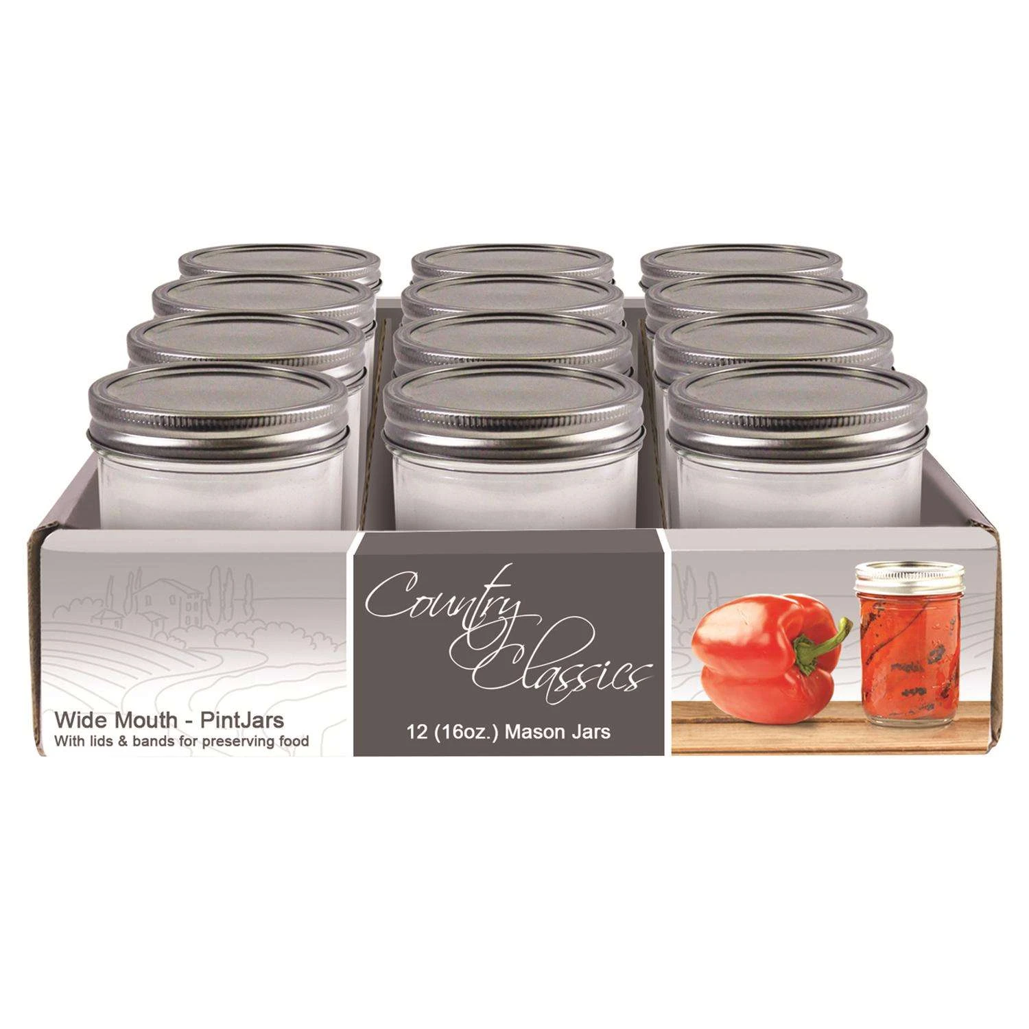 Country Classics Regular Mouth Canning Jar 16 Oz 12 Pk