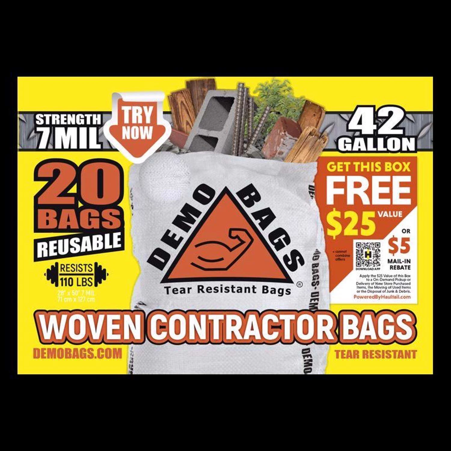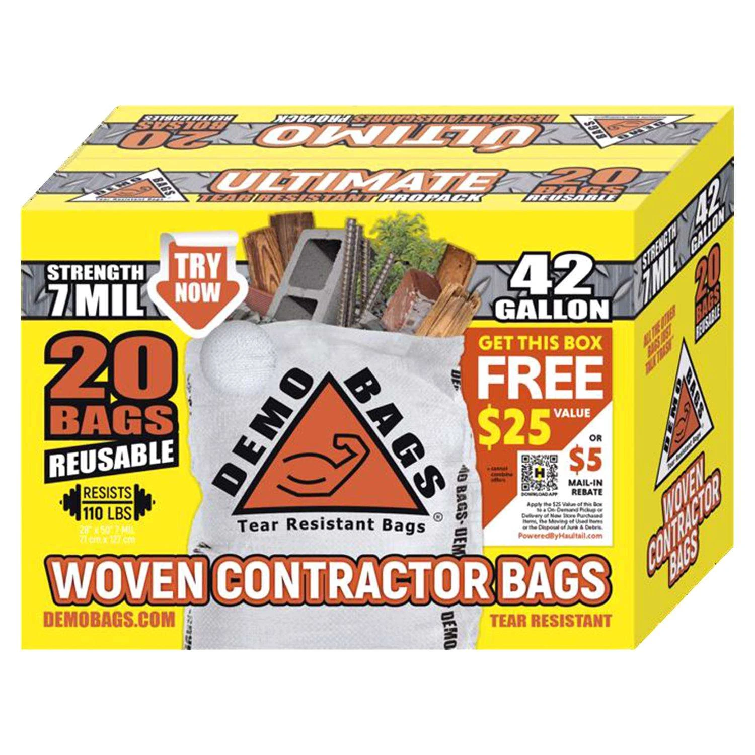 Demo Bags Ultimate Pro Pack 42 Gal Contractor Bags Flap Tie 20 Pk 7 Mil