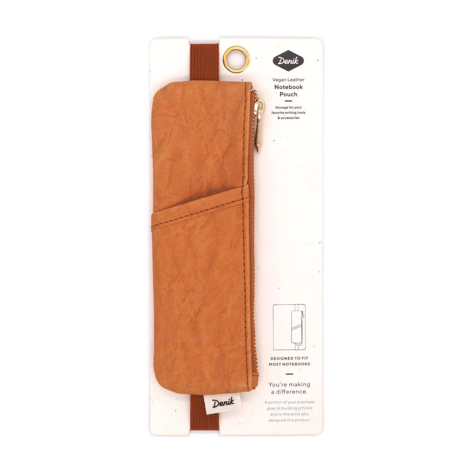 Keep your favorite notebooks and writing accessories together forever with our new notebook pouches. (Seriously, we’re not sure why we didn’t think of these sooner.) Embroidered design on soft faux suede, fully lined with an elastic band that fits around most notebooks. Zipper closure prevents items from falling out and keeps contents secure Features a vegan leather body and caramel crinkle lining Fits any notebook
