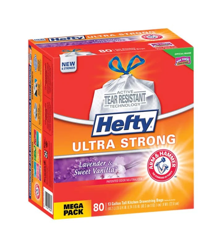 | Search Field | Hefty Ultra Strong 13 gal Lavender/Vanilla Scent Kitchen Trash Bags Drawstring 80 pk 0.9 mil Trash and Recycling Trash Bags TRASH BAGS HOUSEHOLD TRASH BAGS REYNOLDS CONSUMER PRODUCTS INC Hefty Ultra Strong 13__rexuom__gal 13__rexuom__gallon 13__rexuom__gallons 80__rexuom__pk 80__rexuom__pack |