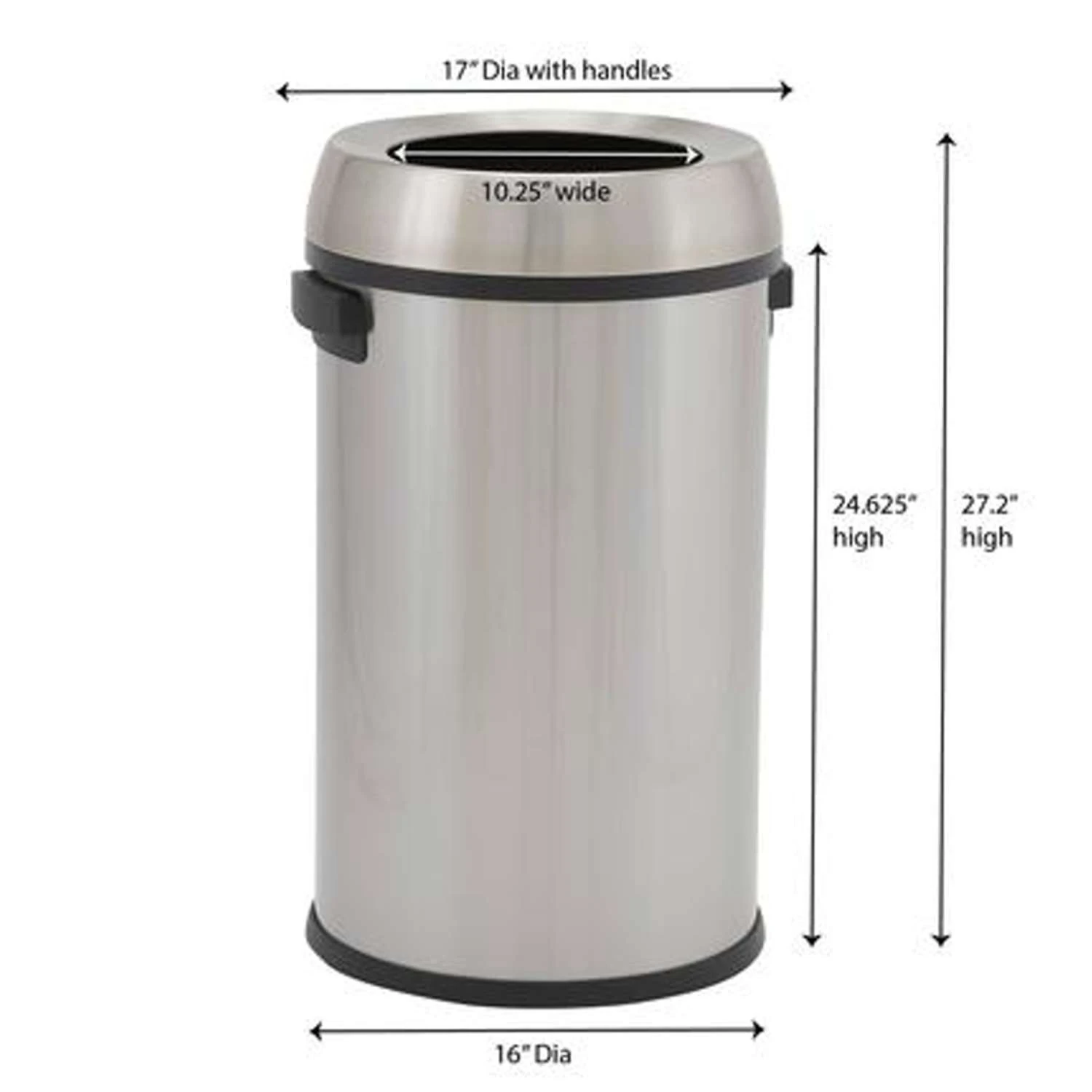 Household Essentials Tahoe 17 Gal Silver Stainless Steel Open Top Commercial Wastebasket
