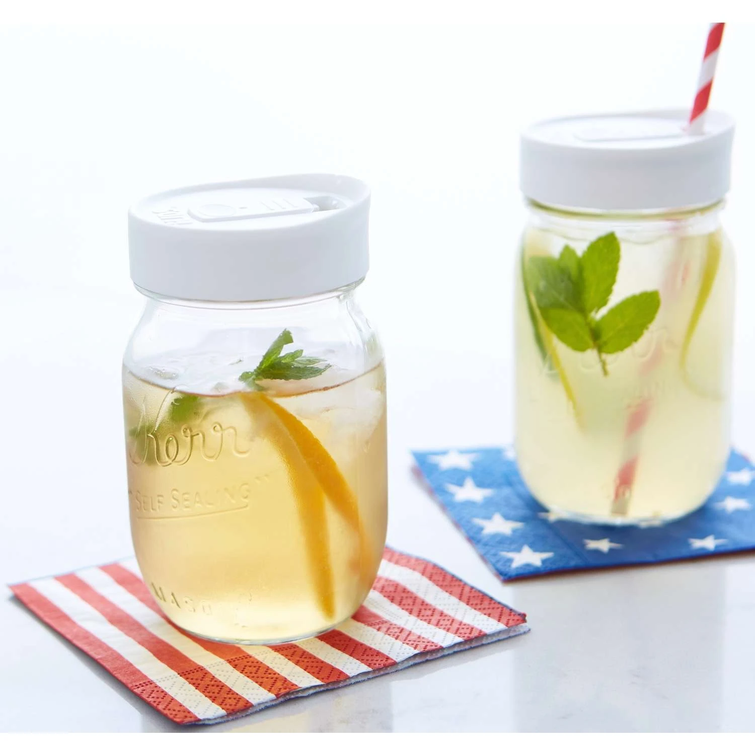Drink on the go with or without a straw. The Drink Lid accommodates small or large straws, but you do not have to use a straw. It is designed with a nice little indent for your lip, making it comfortable to drink straight from the lid. Fill up your mason jar at your favorite coffee shop and top it with an iLID. One less cup in the landfill and we all know it really does add up. If you are drinking hot liquids from your jar a sleeve is a very good idea. Make a large quantity of your favorite drink then pour it into individual 8-16 oz jars and cover with Regular Drink or Storage iLIDS. Store it in your fridge for grab and go convenience without the grab and go waste. Have you figured out that the regular mouth quart mason jar is the one that fits most standard countertop blenders. Make your smoothie or shake in the mason jar, cover with the blender’s blade apparatus and blend away. Then remove the blade and replace with a drink or storage iLID and you’re on your way. If you’re new to the idea that the mason jar fits on a blender. What a nice little gift for your favorite friends who love their mason jars. Made from recyclable material Dishwasher safe Use with or without a straw Easy to use Stylish and durable They look great, too and spill resistant They are free of BPA, BPS and phthalates Reduce, reuse and recycle Beautiful design