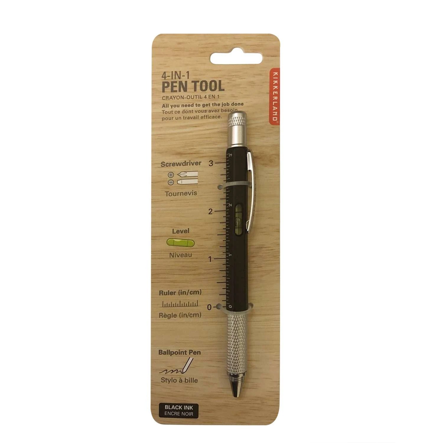 A handy tool for a handyman, this 4-in-1 pen not only serves as a refillable ballpoint, but it also features a Phillips and a flathead screwdriver, a level and a ruler. Crafted with metal in a compact design, this multi-tasking wonder will ensure you get the job done. 4 in 1 ball point pen includes 1 philips screw-driver head 1 level, and a ruler Bring this pen to the office or keep in your tool box Pen comes in Silver and Black colour chooen at ramdom