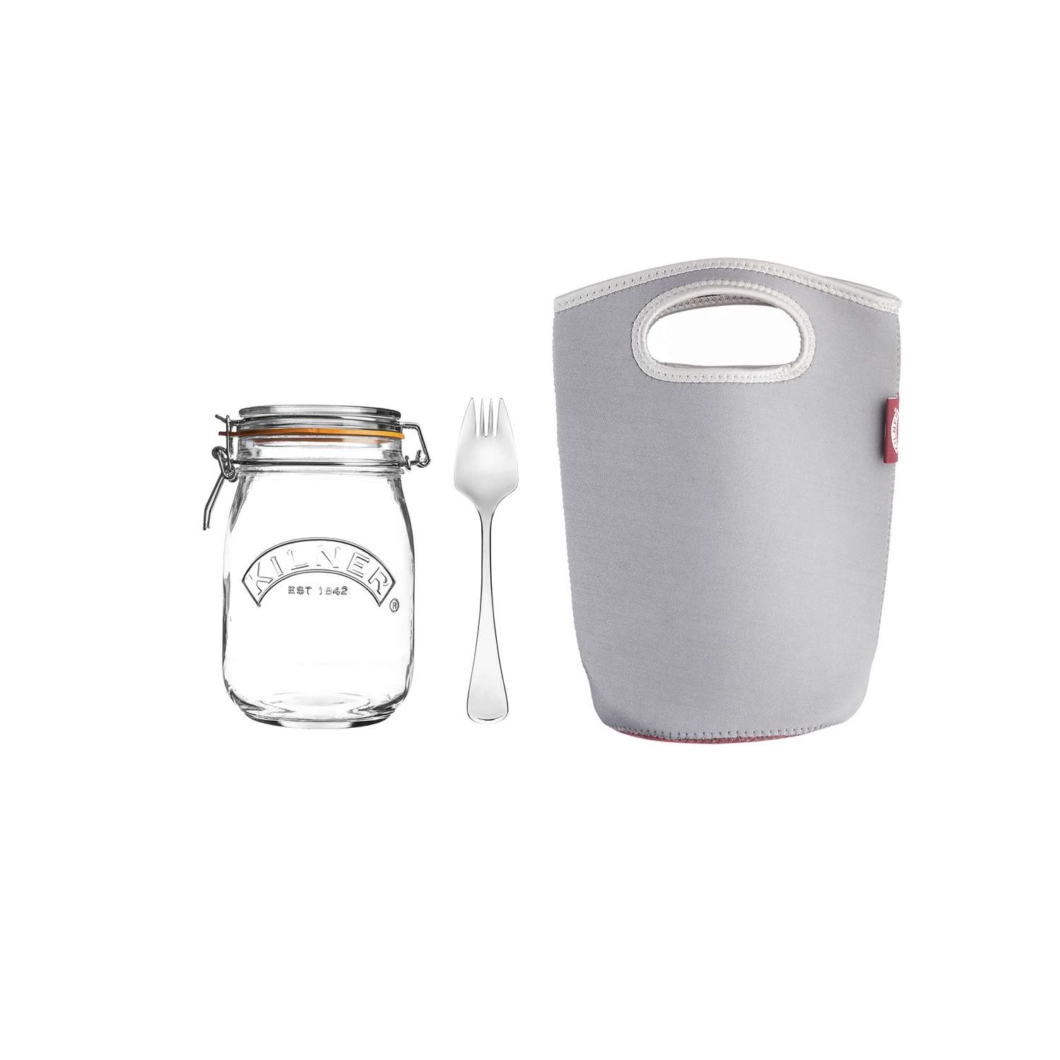 Kilner Make and Take Set contains everything you need for when you’re feeling peckish on the go. This compact set includes an air-tight clip top Kilner jar, a stainless steel spoon and fork combined, along with a durable neoprene carry case. Perfect for snacking whilst on the go. Includes 1 x 34 fl oz clip top jar, 1 x stainless steel spork and 1 x neoprene bag medium. Neoprene bag features a built-in pocket for your spork to sit in.