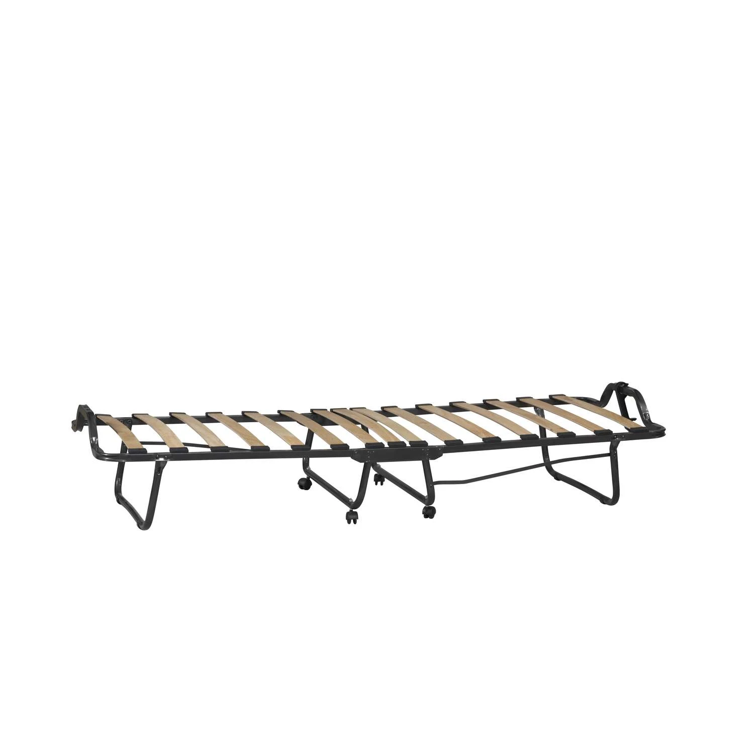 This Folding Bed is simple and easy to use. The bed sets up in mere seconds, while the thick mattress provides your guests with ultra-comfortable support for the restful nights sleep they deserve. Folds down in seconds to an and is small and compact enough to store away in almost any closet. Use it as an extra bed, guest bed, kids bed, day bed or lounger. Mattress is topped with a layer of memory foam Metal frame with CA firefoam mattress Sturdy metal tube frame with durable wood slat supports Casters for easy mobility Elegant beige damask fabric cover