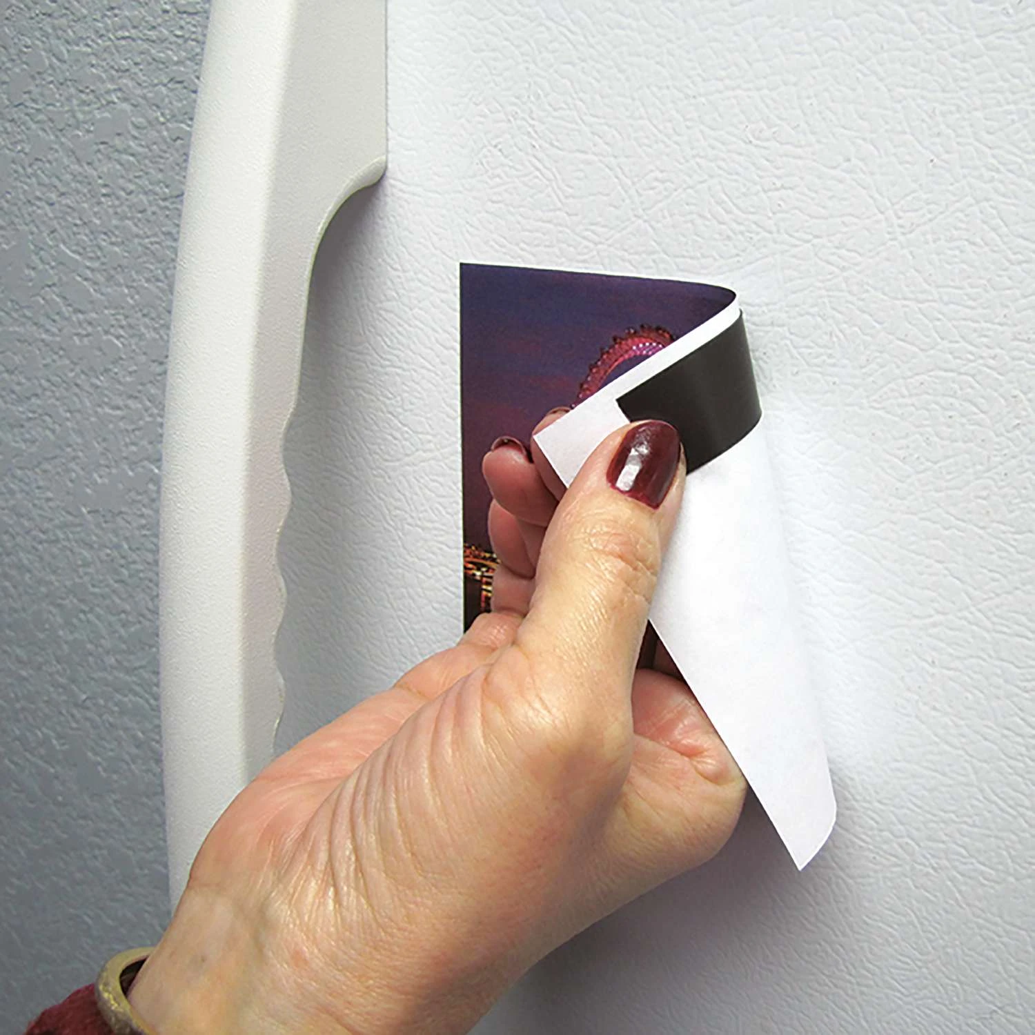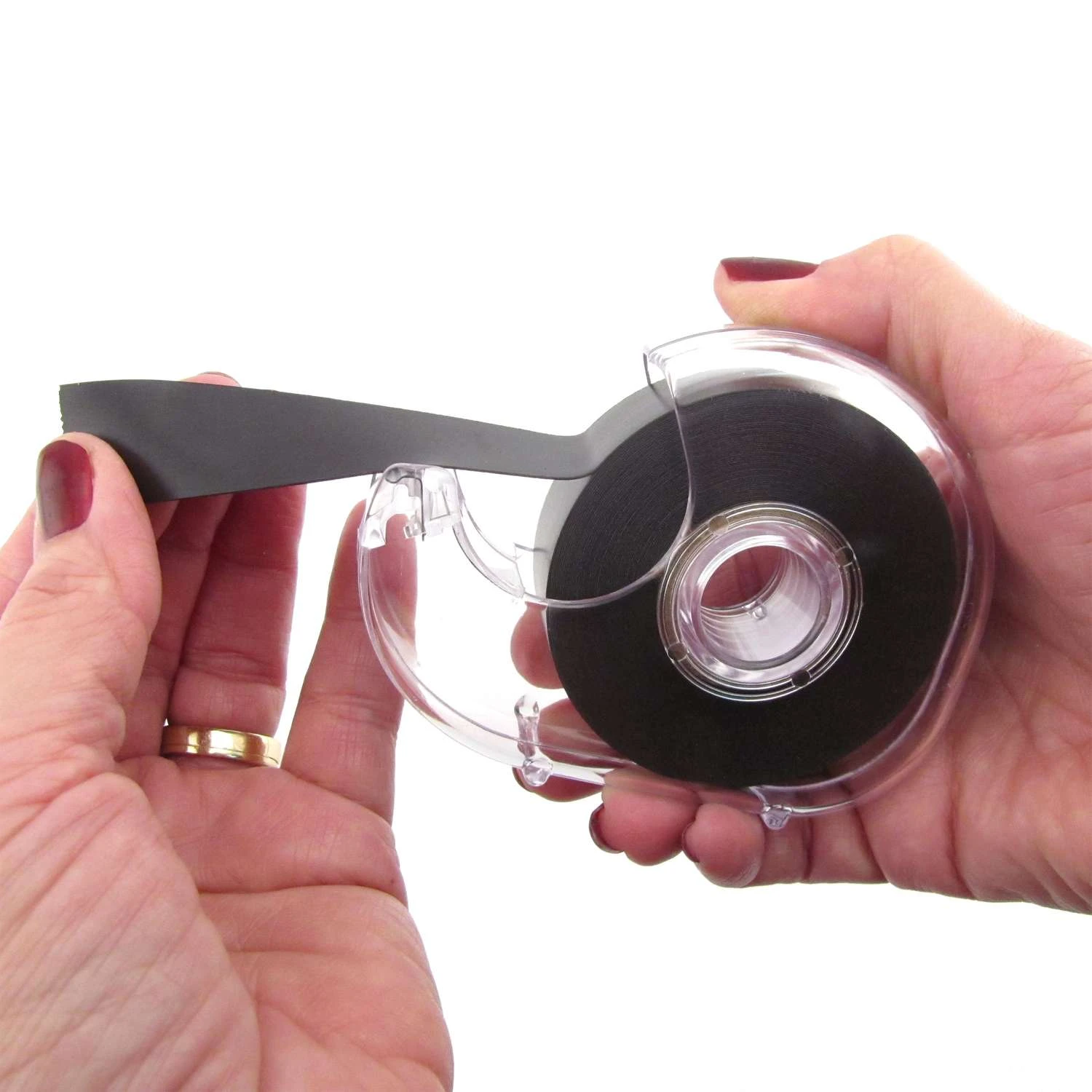 It’s just like regular tape – tear off a piece and stick it to the back of photos, schedules, kids artwork, memos, notes and more (no paper liner to remove). Then post those items on any metal surface, such as cabinets, refrigerators, lockers and display boards. More About Flexible Magnets: Flexible materials offer a uniquely desirable combination of properties at lower cost than other magnet materials. The flexibility and machinability of these materials allow manufacturing techniques not possible with rigid or brittle materials. Flexible magnet material is used in a variety of applications from labeling, holding, door gaskets, and signs, to micrometers and CRT focusing. Practical uses include crafts, toys, games, magnetic signs, displays, production control (or visual aid) systems, warehouse shelf labeling, movable markers, advertising premiums, magnetic business cards, architectural planning layouts and more. Ideal for crafters, teachers and do-it-yourselfers Most pliable permanent magnet material Least expensive magnetic material by volume Provides substantial strength for most applications Post these items on metal cabinets, refrigerators, lockers and display boards Can withstand temperatures up to 200 F Can easily be cut with scissors to desired length Comes in convenient tape dispenser Perfect for home, school and office Great for making lightweight projects magnetic