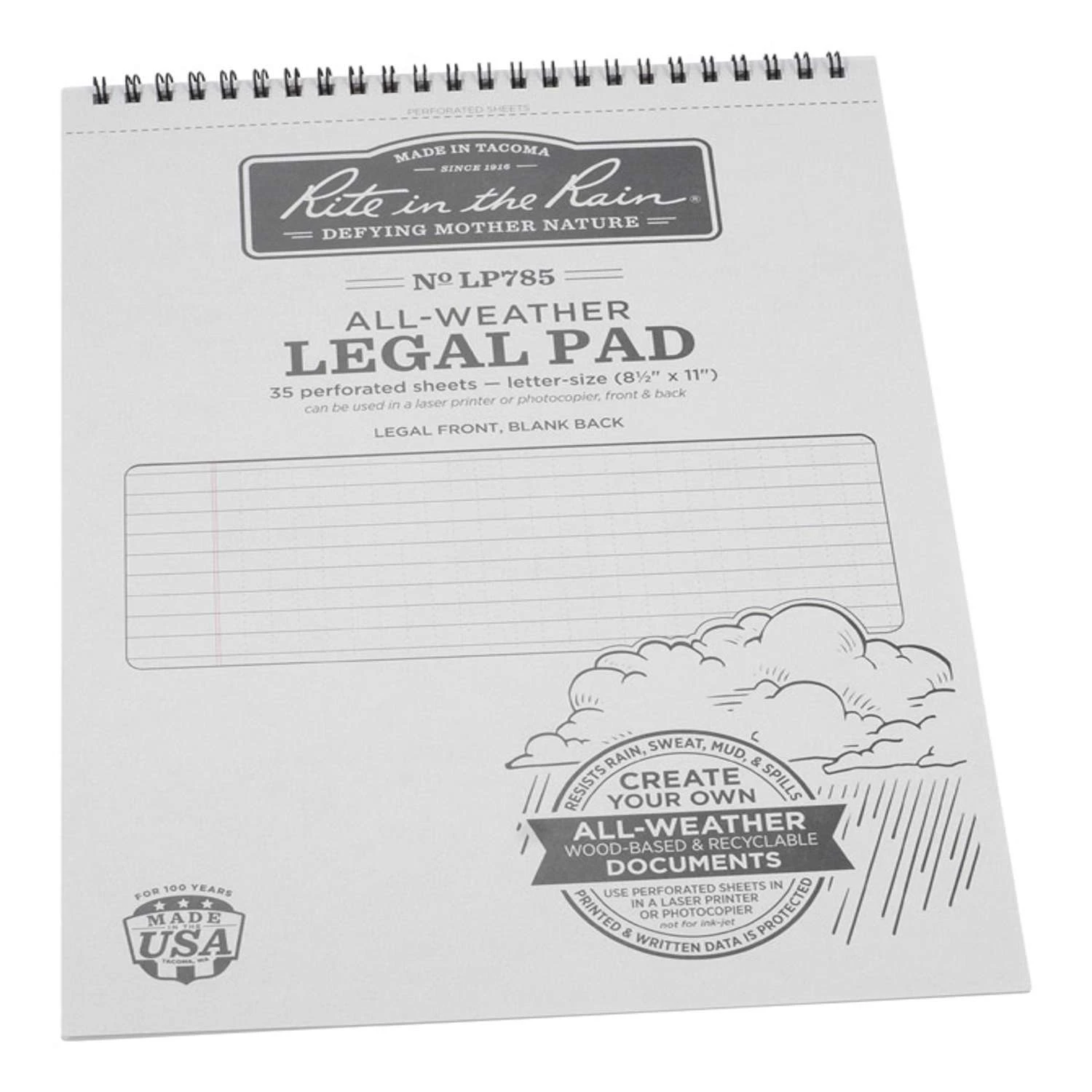 Rite In The Rain All-Weather Legal Pad 8-1/2 In. W X 11 In. L Wire-O White Notebook