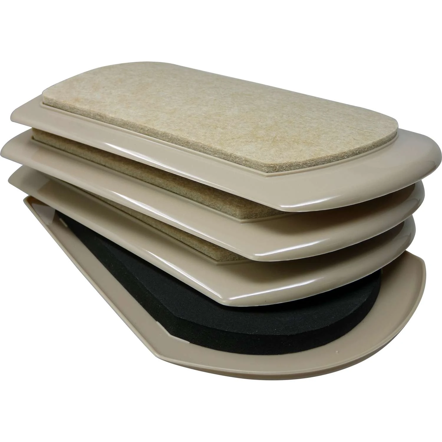The Shepherd Hardware FeltGard Mover pads are ideal for moving sofas, entertainment centers, beds, desks and other furniture. These mover pads make it seem like the furniture is on wheels. Dries faster if they come in contact with moisture. Non-allergenic. Specifically designed for use on hard floor surfaces. One person can safely rearrange or clean behind furniture while protecting floors from damage – make sure floors are clean and free from pebbles or other debris that could scratch floors Taupe plastic Movers Pads with foam cushion & heavy duty beige felt side for contact with hard surface floors Mover pad are reinforced and sturdier for daily use Rounded rectangular taupe plastic Movers Pads with foam cushion & heavy duty beige felt side for contact with hard surface floors