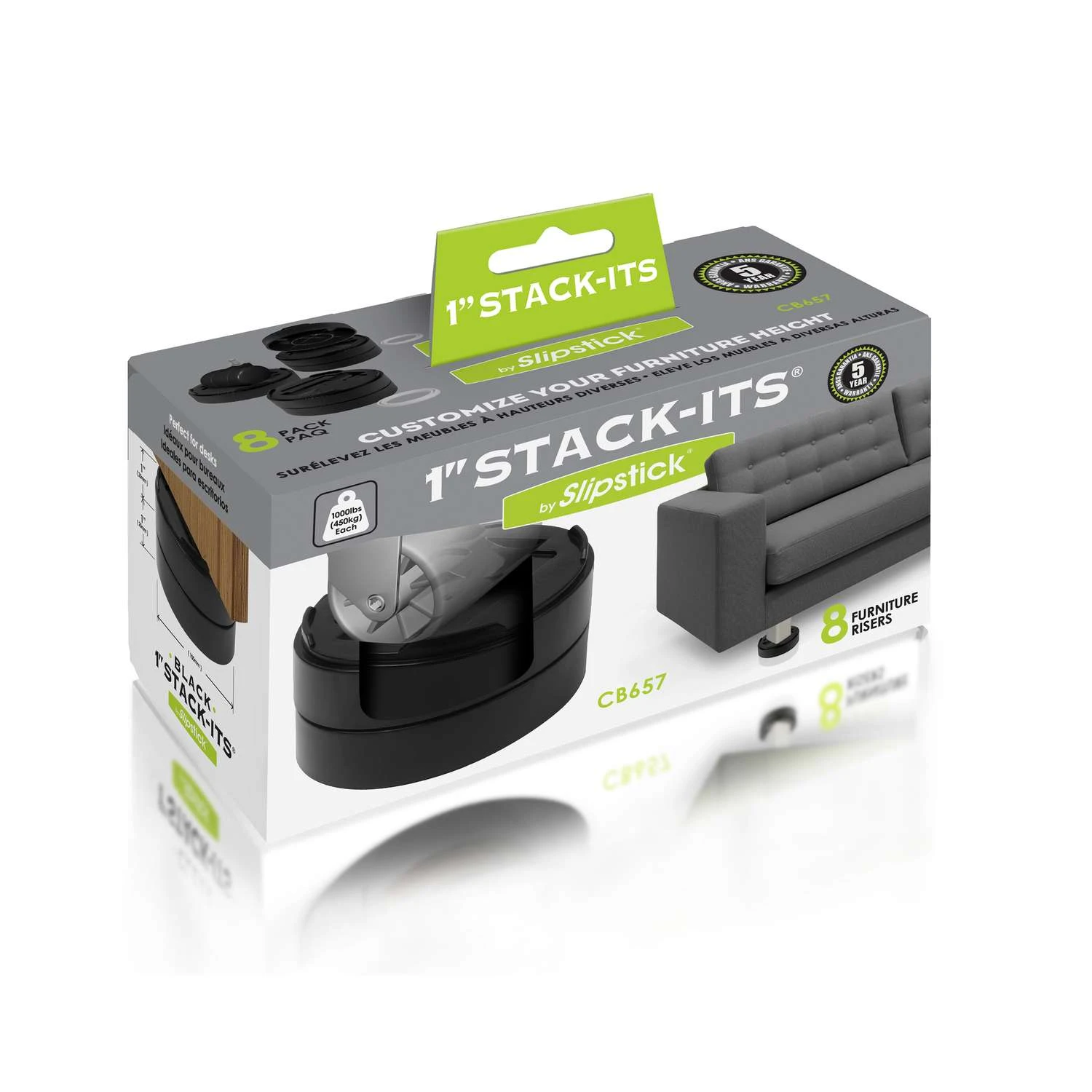 Christopher Allan, the inventor of the Slipstick Foot, came up with the idea because of the situation at his home. He had tiled floors and a three-piece Sofa suite, made up of two double-seat sections and one corner section. They needed to remain in a particular arrangement but kept sliding apart because of the feet on the furniture. In October 1998, still unable to find a solution to this problem, Chris developed an innovative design. He realised that the furniture industry was lacking an effective system to prevent unwanted movement of furniture pieces on hard floors so he simply invented his own. Great for adding height to desks, beds, tables, couches, sofas, dressers and other heavy stationary furniture or objects Each riser has a removable rubber gripper on bottom that protects floors from damage and stops furniture from sliding safe on all floor surfaces To add height to furniture, simply stack these interlocking risers on top of each other, each stack-it riser adds 1 inch height – max stack height is 3 inch (requires 2 sets) Recessed holder top with universal fit contours designed to securely hold in all furniture legs 1 to 3. 5 inches wide and furniture panels / bases 0. 5 inch to 1. 5 inches wide