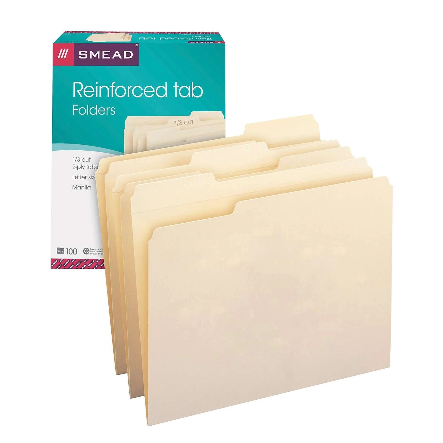 With special tabs, Smead reinforced tab file folders provide extra strength where you use them the most. Plus, their expanding design allows you to add new invoices, contracts and client data without the risk of overcrowding. Smead manila file folders are made of 11-pt. manila stock for durability Manila folder with tabs provides sturdy support for your documents and projects Manila folders are scored for 3/4″ expansion Box of 100 file folders will help you keep plenty of supplies on hand Contains a minimum of 10% postconsumer recycled content SFI fiber – sourcing certified