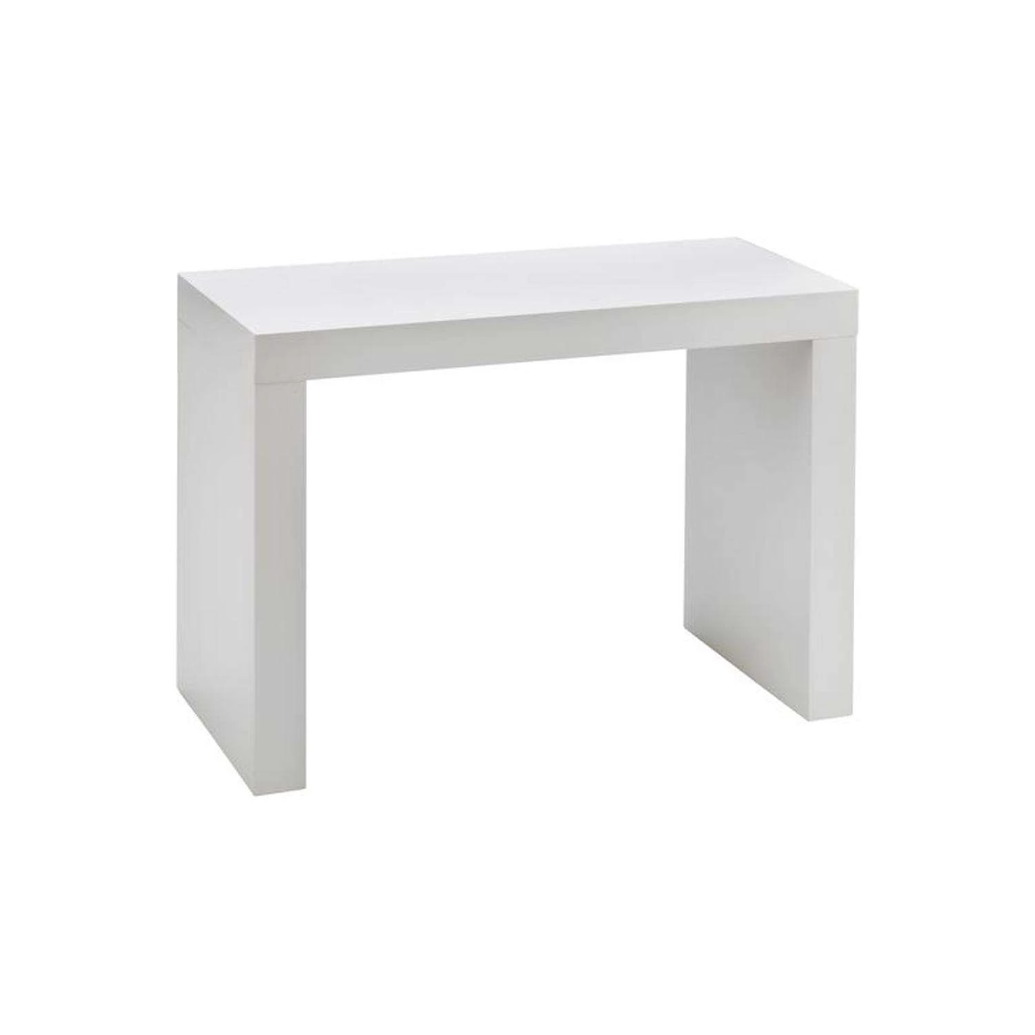 White, clean lines and modern chunky legs make this a perfect accent table, console table, entryway table. Perfect for displaying decor and giving your space a clean, modern feel. Clean, white modern sturdy table with chunky legs Great for displaying any store items and decors Table top and legs are 3″ thick Made of MDF wood