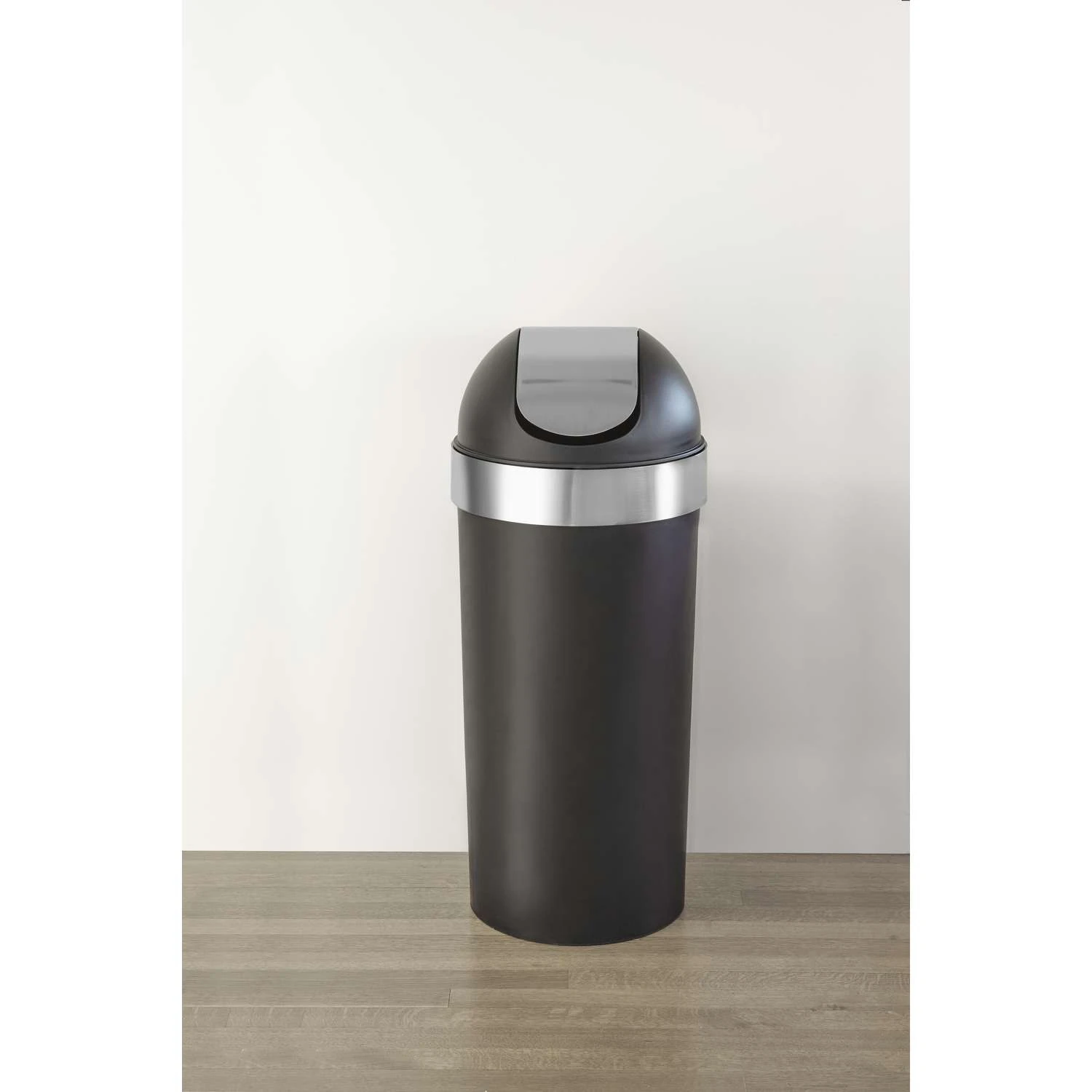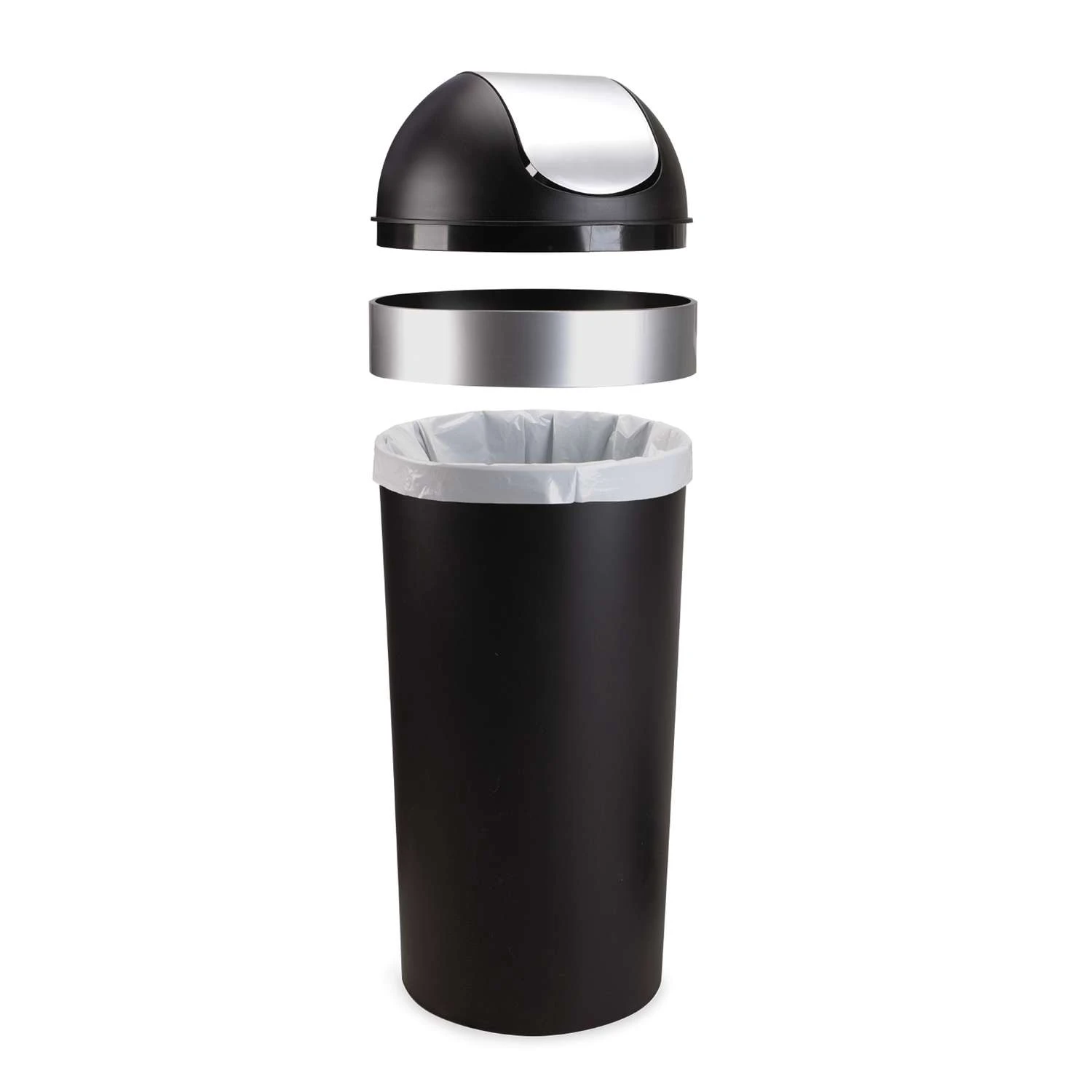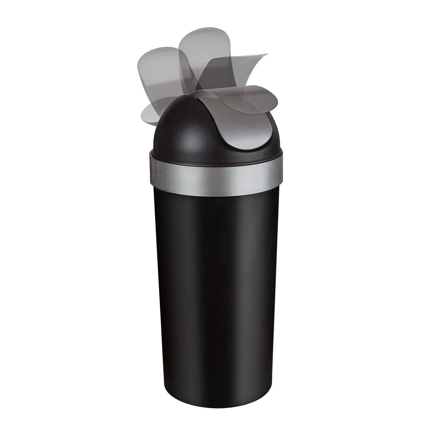 Umbra Venti 16 Gal Black/Silver Plastic Swing-Top Trash Can