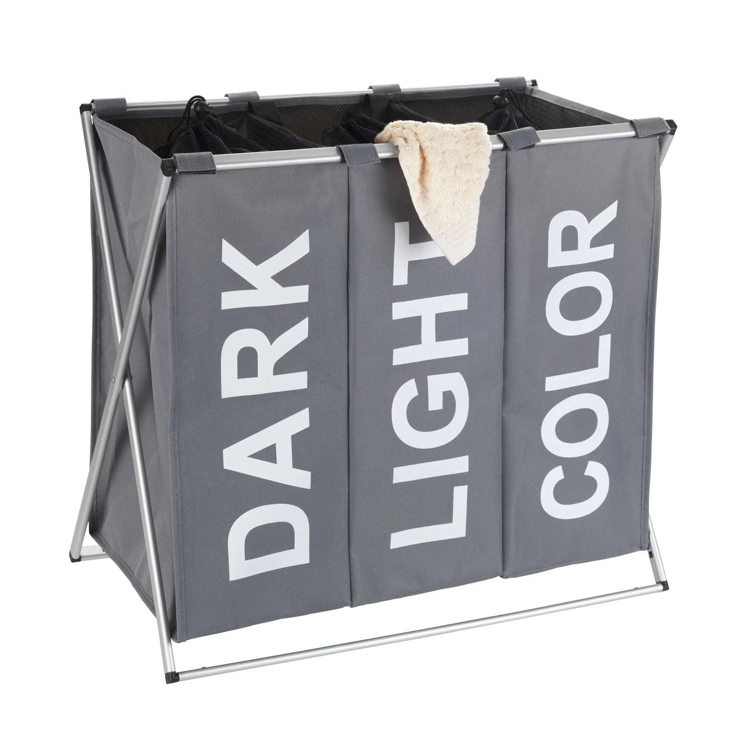 Wenko Trio Gray Polyester Collapsible Divided Laundry Basket
